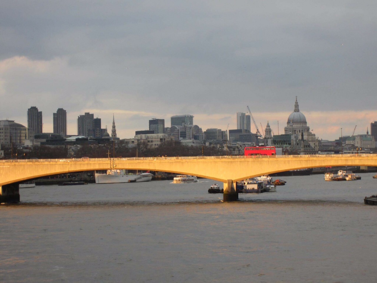 I love that view of the City across the Thames complete with an iconic red bus!