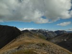 Looking ahead from peak 1 to 2, the path (or lack of path) looked scary. I should walk along that ridge, high up the mountain with steep slopes on either side? But walking along it was less scary then it seemed. During the worst bits, I just looked down and concentrated on the next steps.
