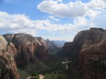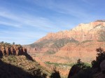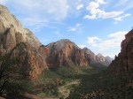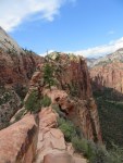 Did I like Zion National Park? Very much. I loved the different shades of the red stone against the green of everywhere near water. When I got there on Friday afternoon, I was lucky to find a campground spot just outside the park with shower and Internet. The shuttle took me to the Angel Landing Trailhead. It’s a steep climb and then a scary sheer drop ridge to the actual Angel Landing. Luckily, there are chains to hold on to. The view is worth it!