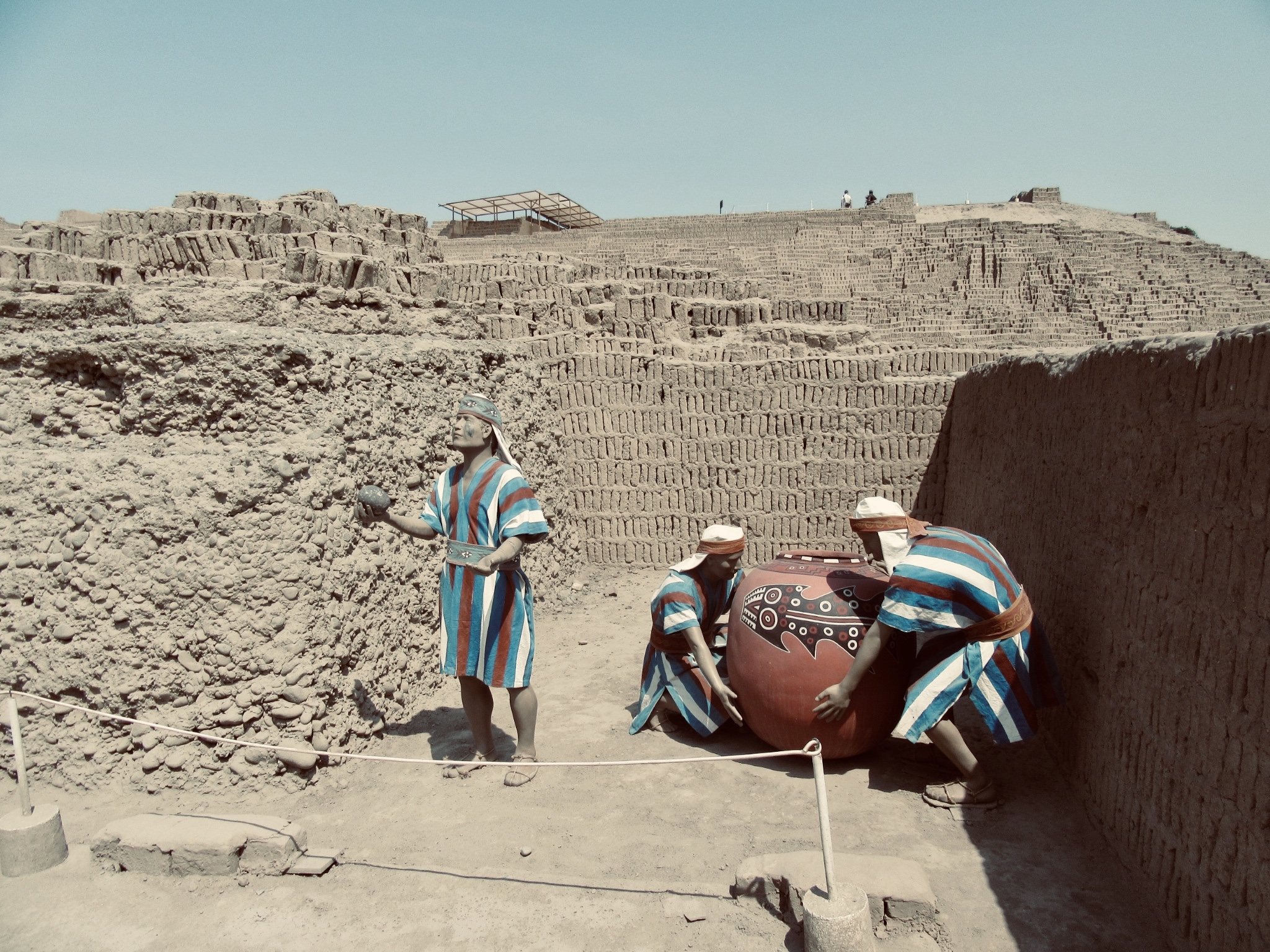 We found quite a nice guesthouse in the Miraflores neighbourhood in Lima centre, not the main tourist area, but more affordable and close to the Huaca Pucllana ruins, a pre-Incan pyramid. We got a chance to visit them the next morning before our flight and after a nice breakfast in the guesthouse. It was hot even at the relatively early hour in the day and there was no shade. We walked around the pyramids learning some facts from the info tablets. Apparently, the site was a ceremonial and administrative centre of the Lima Culture, which dominated the area around 200 AD to 700 AD and was governed by elite clergyman.